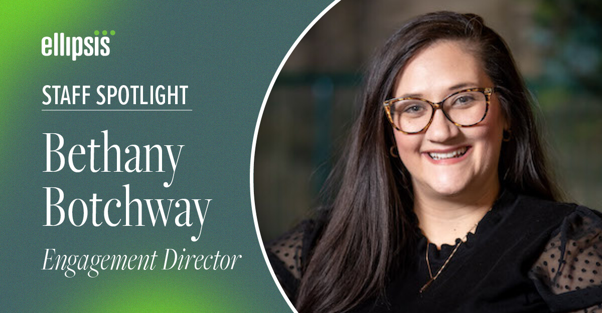 I'm the new engagement director for Ellipsis. Since I’ve only been in the role for a few weeks, there isn’t a “typical” day yet, but what excites me most is the opportunity to support engagement both internally and externally. A big part of my work will be finding ways to celebrate our staff for all the incredible work they do every day. They are the ones on the front lines, in the thick of everything we do, and I’m eager to help highlight their contributions.